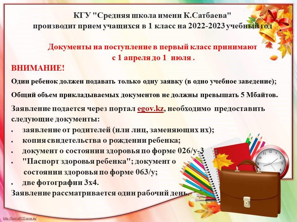 2022-2023 оқу жылына 1- сыныптарды қабылдау