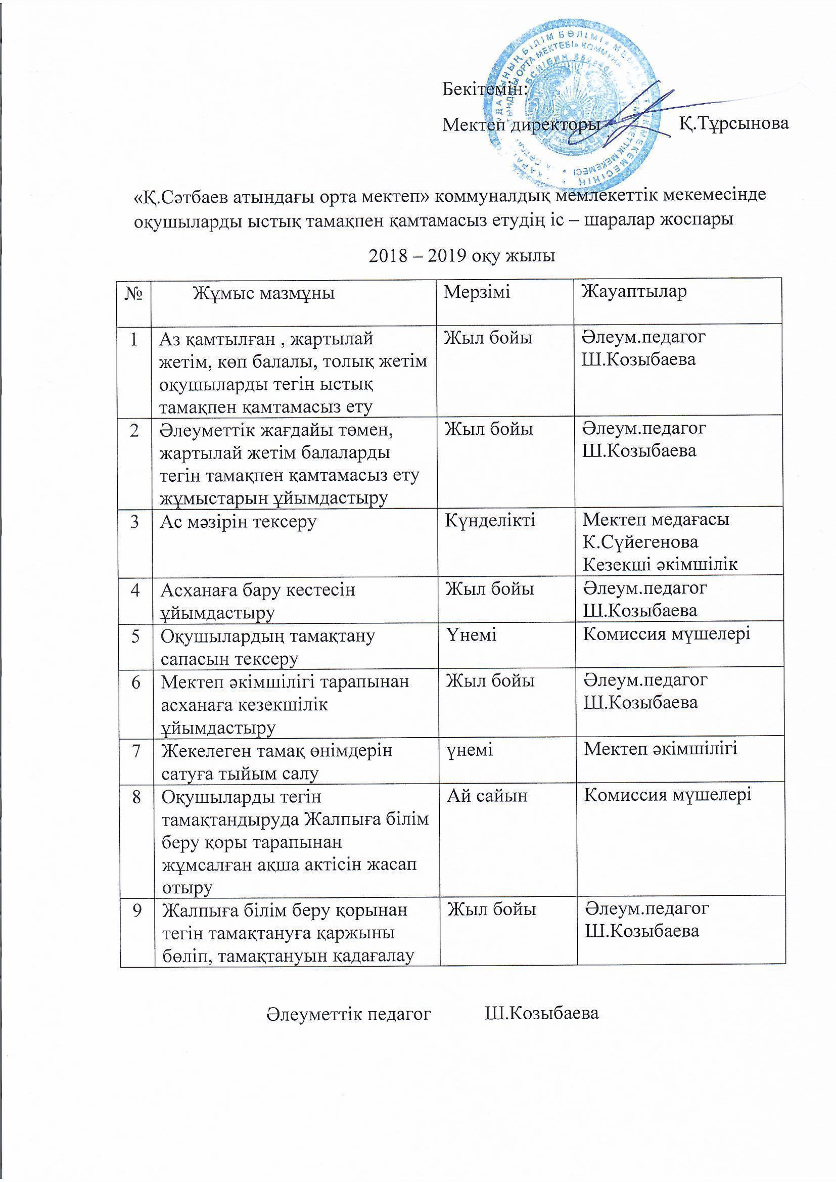 Іс-шаралар жоспары » "Алматы облысы білім басқармасының Қарасай ауданы бойынша білім бөлімі" мемлекеттік мекемесінің "Қ.Сәтбаев атындағы орта мектебі" коммуналдық мемлекеттік мекемесі